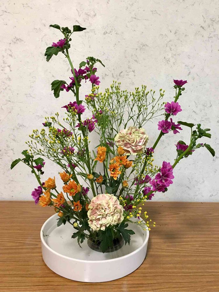 今回のお稽古🌼、未生流の基本形、色彩盛花、体用型B。