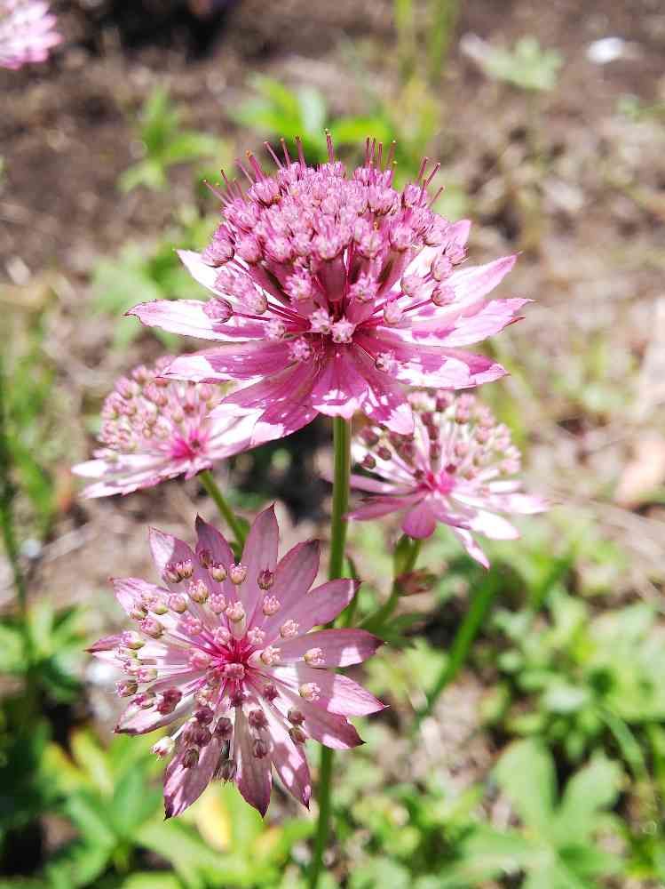 毎年ヒョロヒョロに咲くアストランティア。アップで撮るとわかりませんが、小さいのがほんの数本咲いてます。
