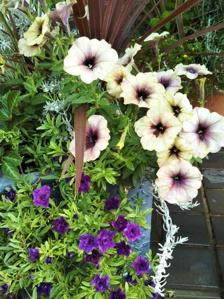 2年目のペチュニアとカリブラコア、お気に入りだから綺麗に咲いてくれて嬉しい❤️