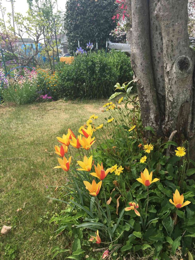 きれいなお庭ですね。花も良いし、木がいい味出してますね🎵