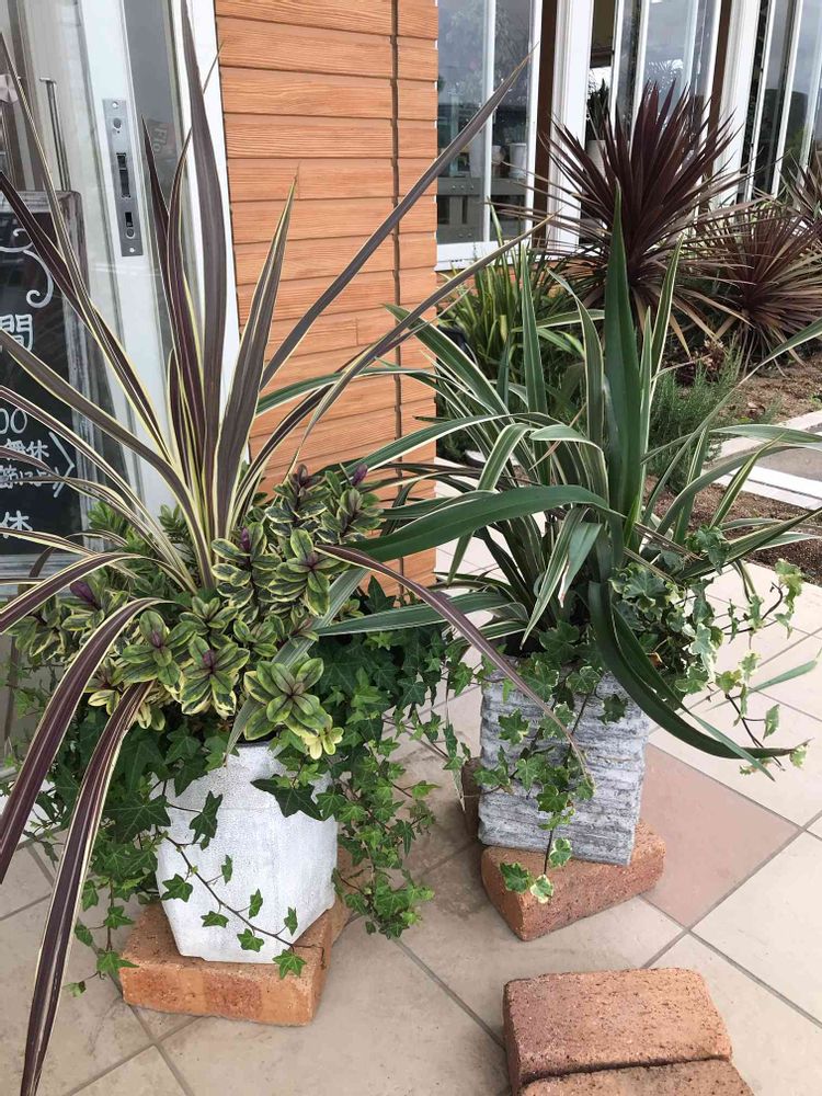店内 入り口で、涼しげな寄せ植えが