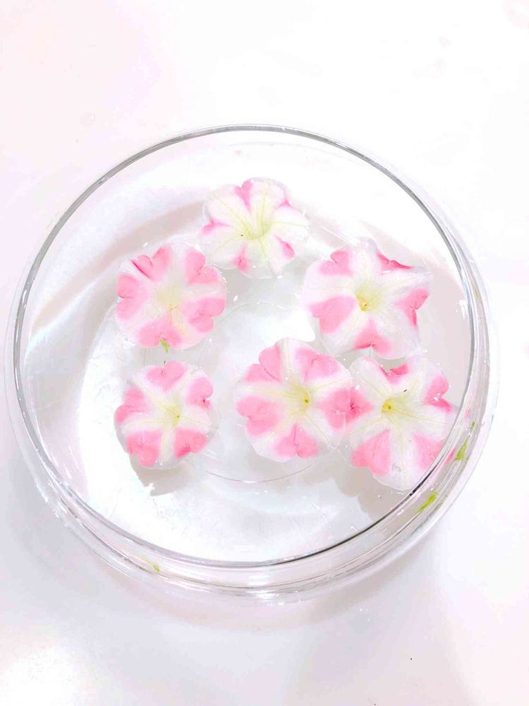 切り戻しした時のお花をガラス鉢水盤に浮かべてみました💗