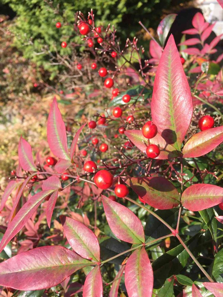 いい色になってるなぁと、夫の実家の庭を見渡したらあちこちに南天の木がいっぱい