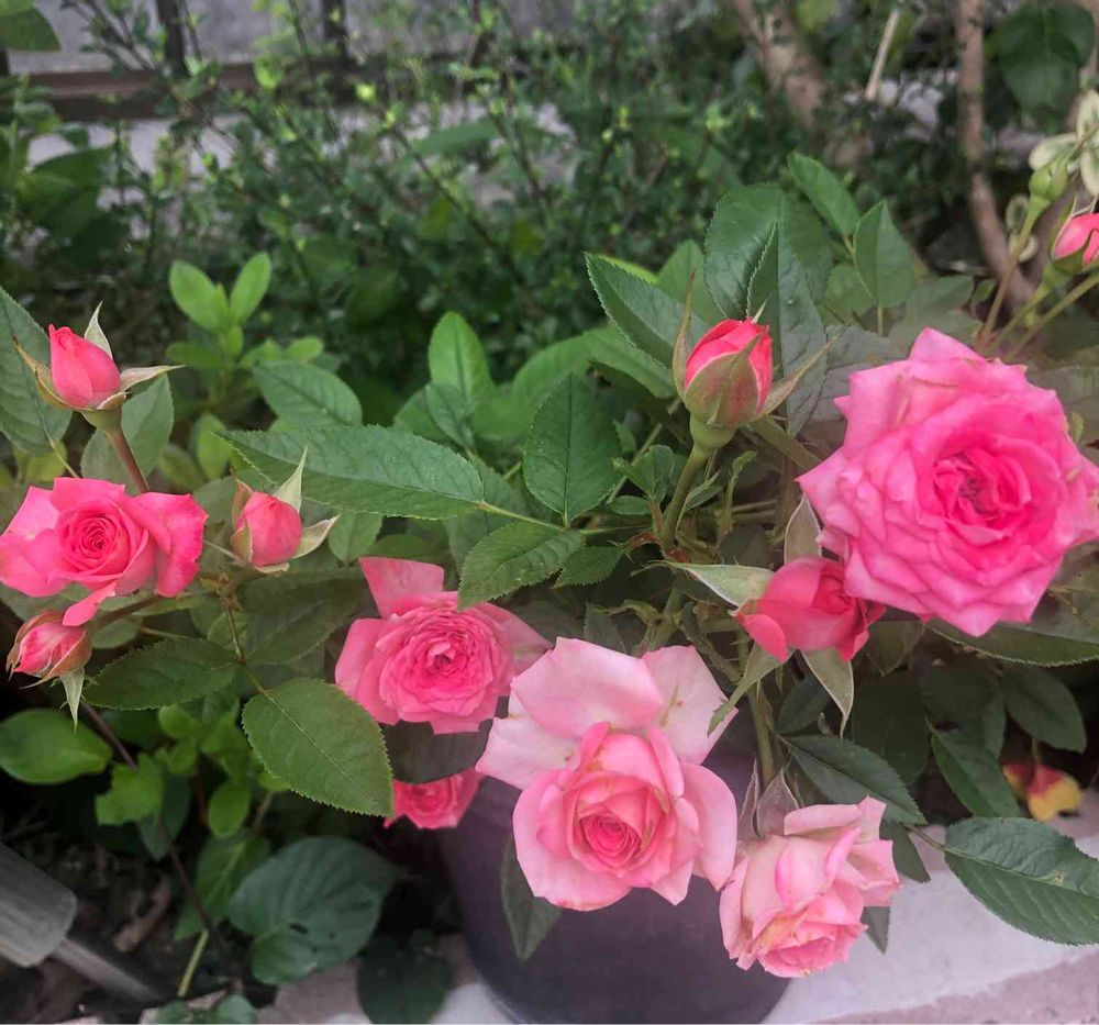 休日…小さな庭の花達を眺めて過ごしました。可愛い薔薇です✨