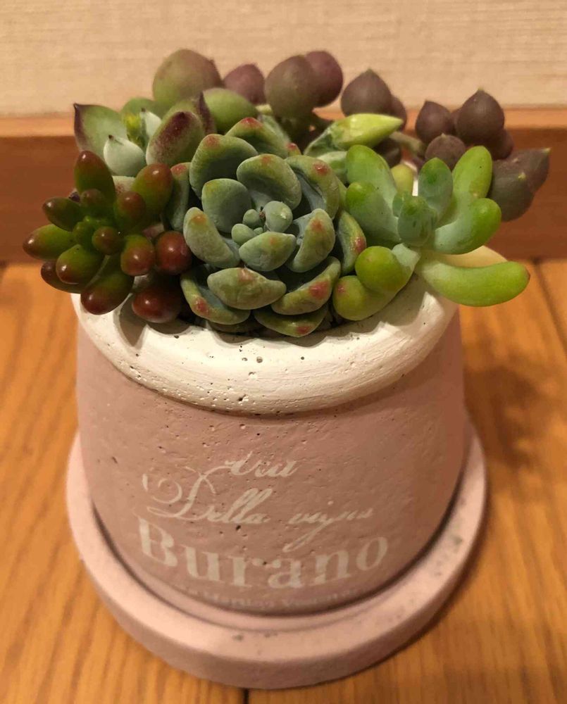 昨日行った雑貨屋さん、seolleimさんで購入した鉢へ寄せ植え。妹の家の玄関に、と思って。姪っ子がピンク好きなので、可愛いピンクの鉢に、ピンク系の多肉ちゃん達を寄せました♡♡