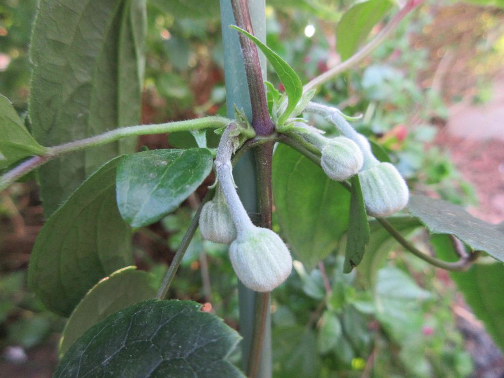 JAで蕾いっぱいのクレマチスを見つけました。とっても良い苗で多分3分の1くらいのお値段。だからJA好き~♪