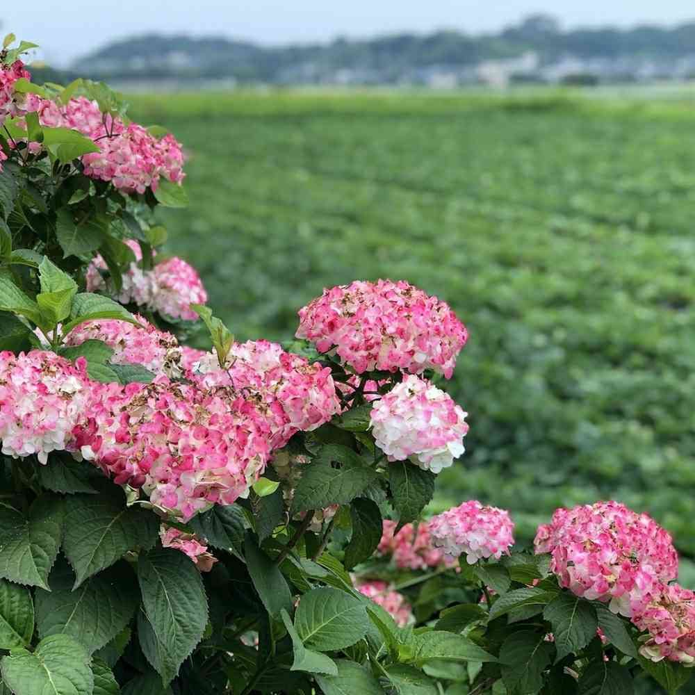 ブルー系の紫陽花が多いので、ピンクが新鮮💕