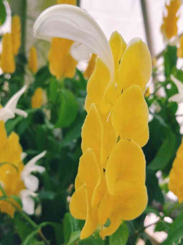 なんか明るいですね✴️白い部分が花びらなんですがまだ咲ききってない状態で咲くとスカウエリアカリコトリカに似てます😊調べたら同じ科目でした、キツネノマゴ科🤭かわいい😍