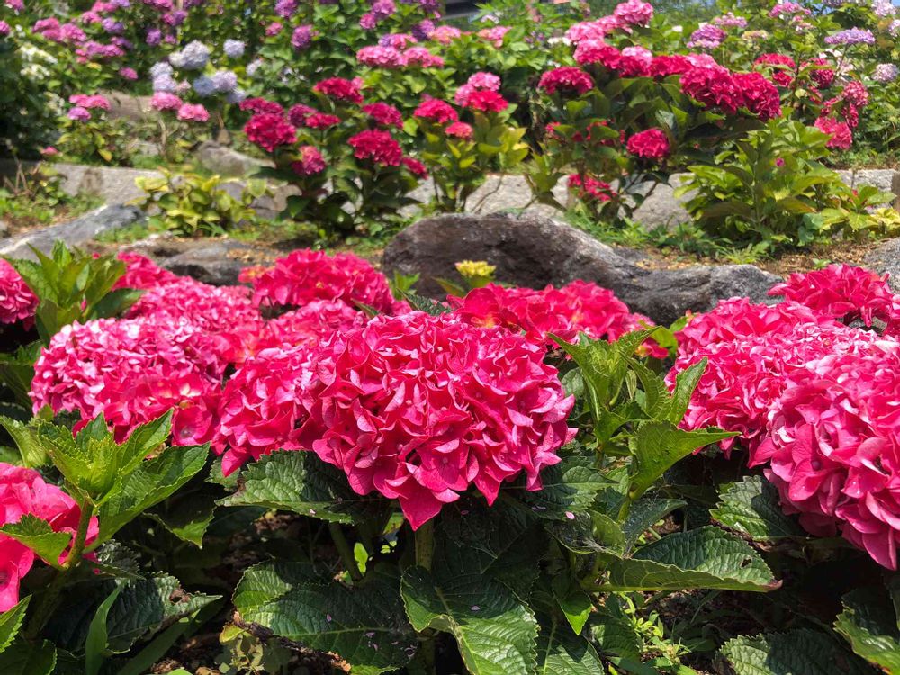 背景もピンクや赤のアジサイがいっぱいで見応えありますね😃