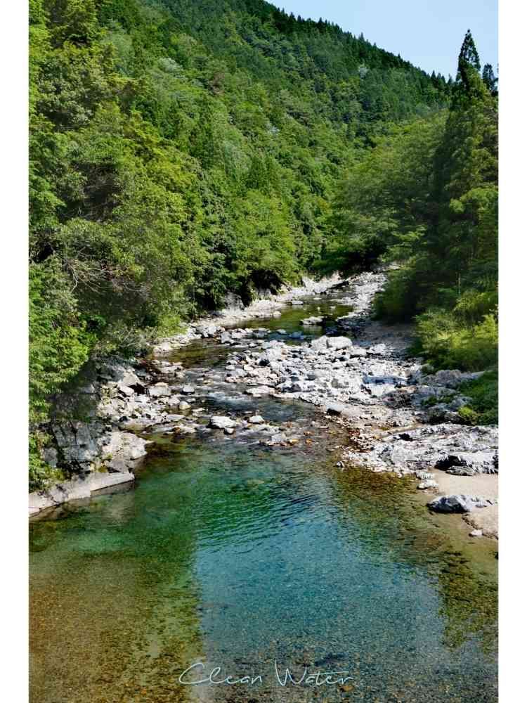 モネの池駐車場脇の橋から清流、板取川を望む。上流方向の眺め。💧🏞️✨😌
