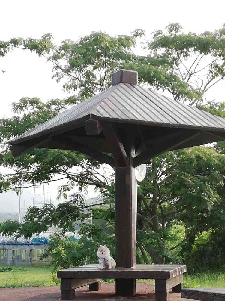 東屋の後ろの大木は分かりにくいですがネムノキです😅