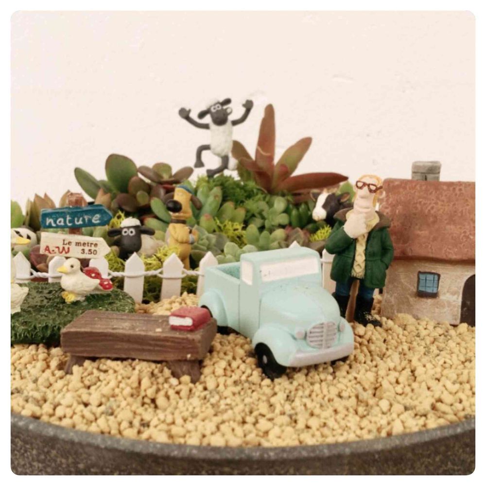 牧場主さんが仕事に専念している後ろで多肉畑でショーンがまた何かしらのいたずらをしようとしていますねぇ(笑)