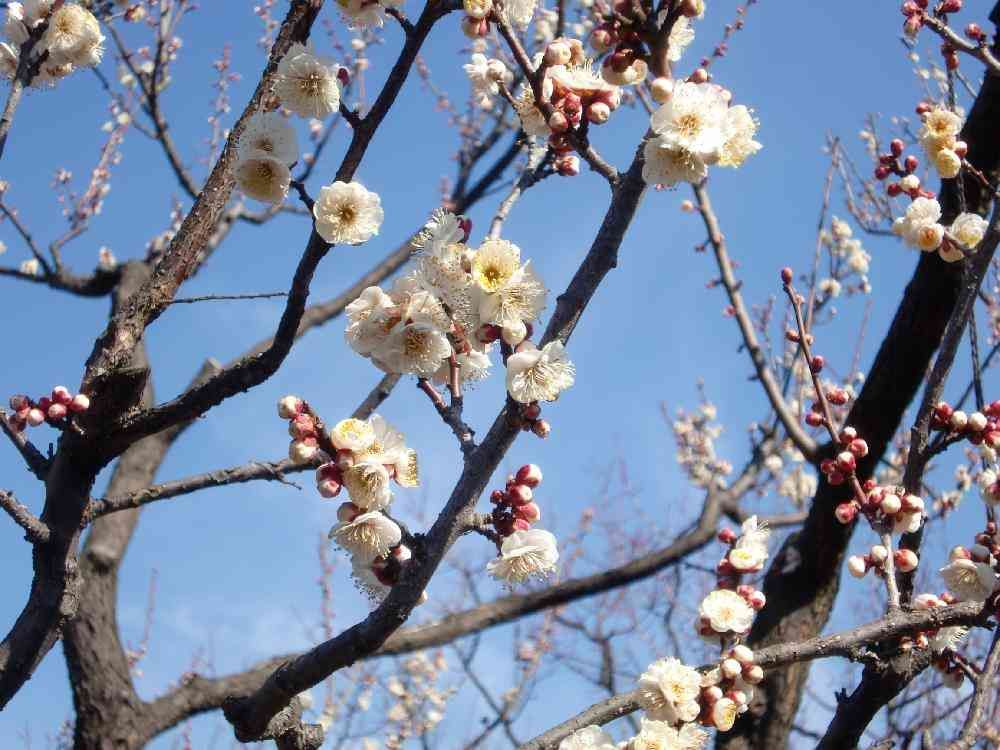 白梅・紅梅ともに5 本くらい開花していました。あとはほとんどつぼみでしたけど。