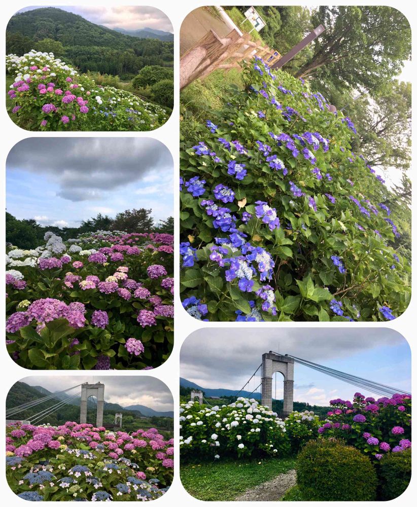 紫陽花と風の吊り橋