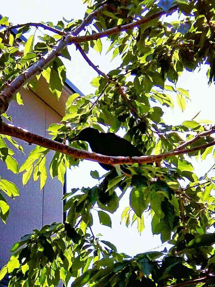 自宅庭のサクランボが赤くなりそろそろ食べ頃と行ってみると先客が