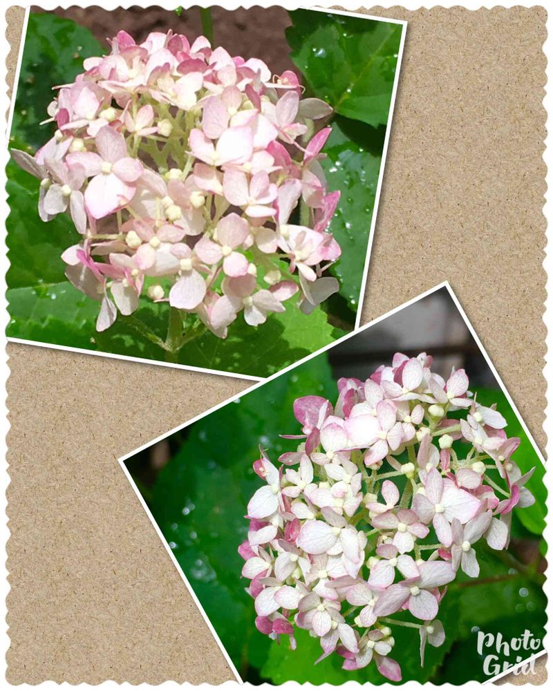 アメリカの紫陽花、アナベルを初めて購入しました。ツボミもわからない時に購入しましたが、ドンドン成長して薄っすらピンクの花が4つ着きました😊💕