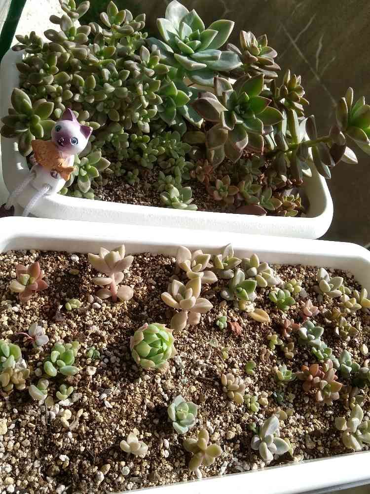 下のプランターは名前の分からない葉挿しっ子こちらもまた元気に成長中♡♡
