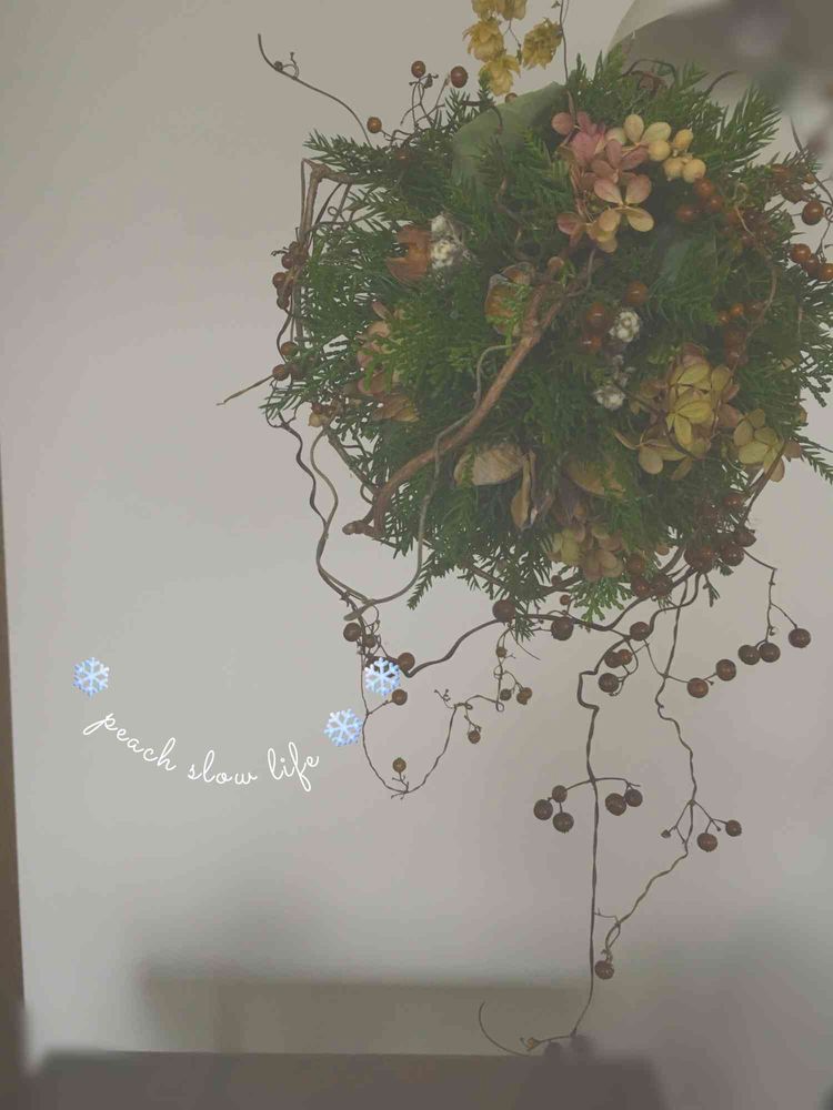とっても素敵なリース✨まだ赤い実が自由な感じで好きだな〜もうすぐだねクリスマス🎄🎅💕