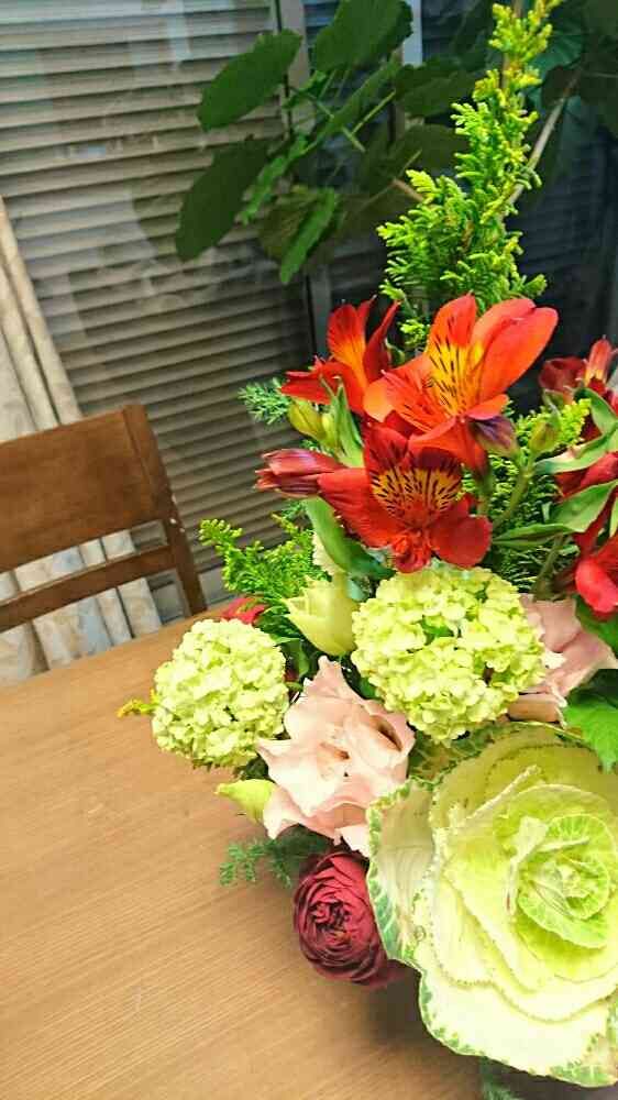 先日の葉牡丹達が枯れる前にアレンジメントの練習。難しい!どうしたら上手くなるかしら??