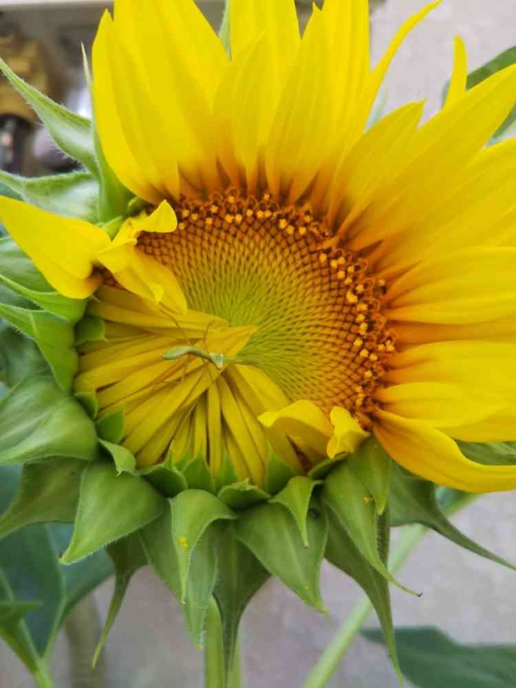 開きかけの向日葵も可愛いし、小っちゃいカマキリも可愛いしで、もうコメントに困るオブ困る🌻🌻