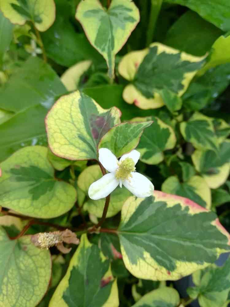 さん、コメントありがとうございます。斑入りは、普通のドクダミより、匂いはきつくないんですよ😊そこらにある、ドクダミは匂いがきついですが、とってネットなどにいれて、靴箱に入れると、消臭剤の代わりになりますよ😊😄