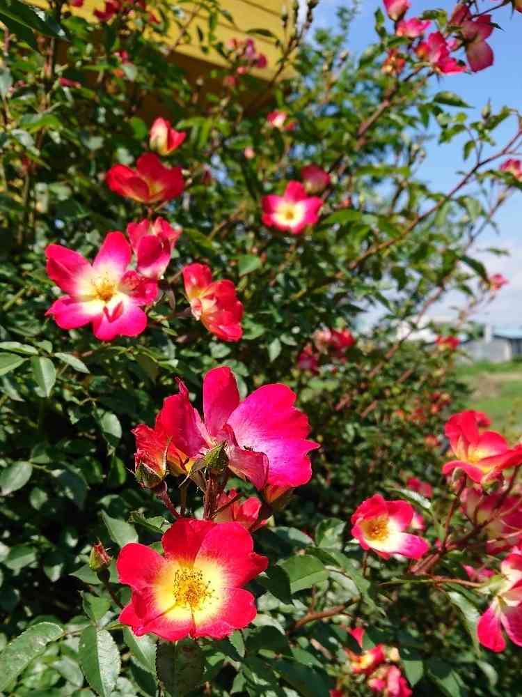 盛りの時に一緒に咲いてくれる、できればセルフクリーニングしないタイプ(階下に散ると困るので)のつるバラ探してるんです🌹✨