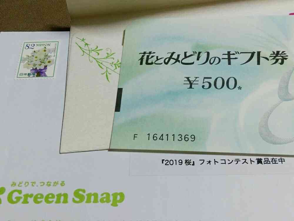 の商品・花とみどりのギフト券500円分届きました。ありがとう御座います。