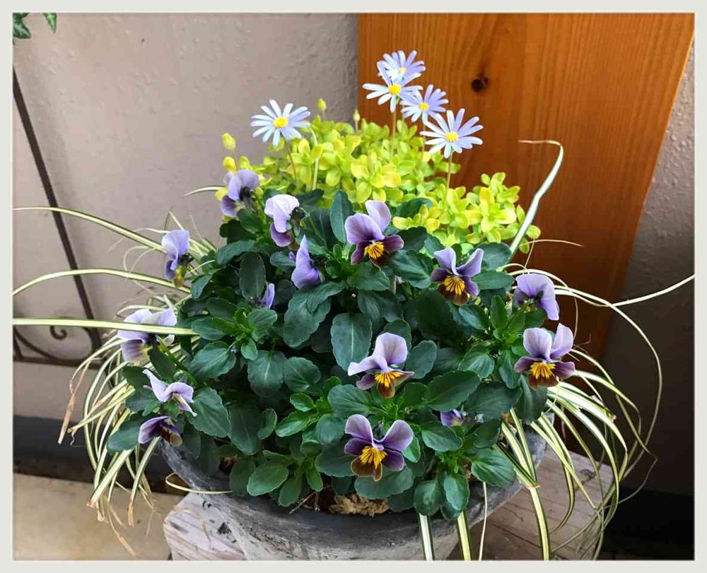 バルコニー/ベランダ,ブルーデイジー,ビオラ フロステッドチョコレートの投稿画像