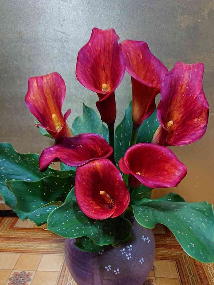 こてきちさんのところのカラーは斑入りリーフで、生け花にしても映えるますね🤗