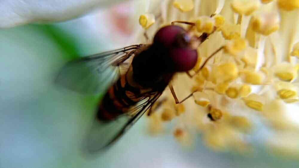 チャノキの花粉を集める