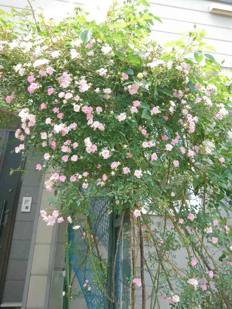 玄関アーチ右上で、花束💐に なっている夢乙女
