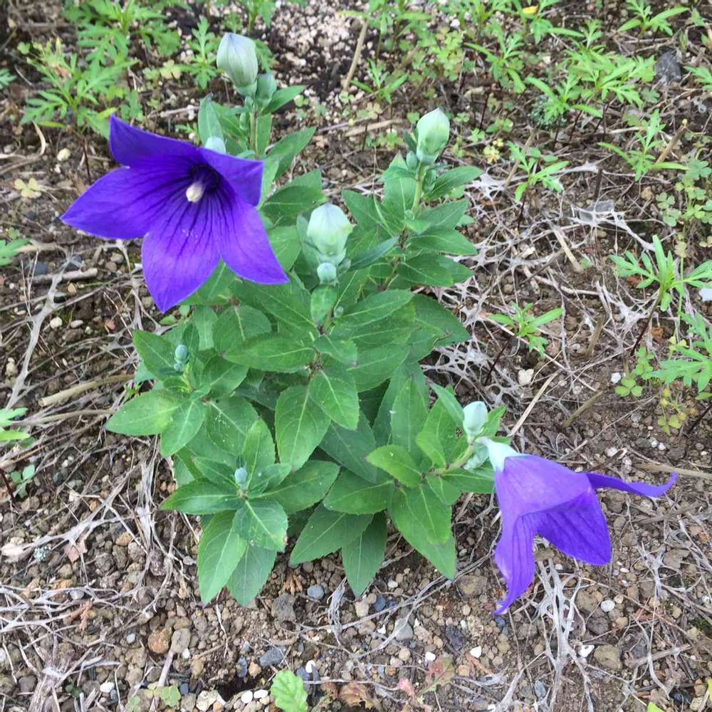 矮性のキキョウ「ポップスター」が咲き始めました。去年秋にホームセンターで買い、ポット苗のまま放置していたのをこの春地植えしました。白花も同時に植えたのですが、そちらは他の植物の陰になっていて、徒長してるし、いくつかの蕾は虫に食べられちゃったし、残りの蕾もまだ固い。元々日当たりがあまり良くないうちの庭は、なかなか上手くいきません。