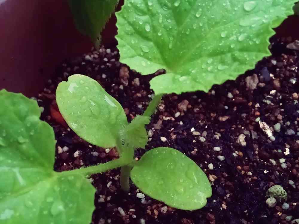去年初めて挑戦した「ベランダメロン」の種を採っておいて植えてみたら芽が出ました🌱✨