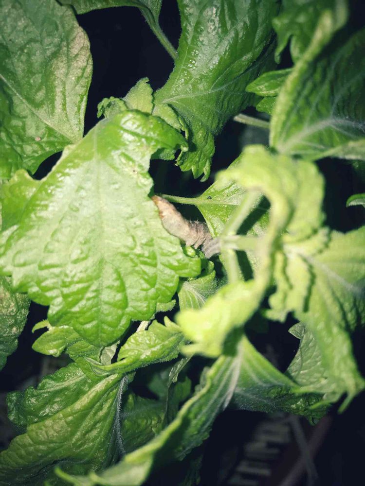 2代目青じそが、ちゃんと香りのある葉っぱをつけてたので元気だと思ってたのですが、なんだか葉っぱがかじられている🤔