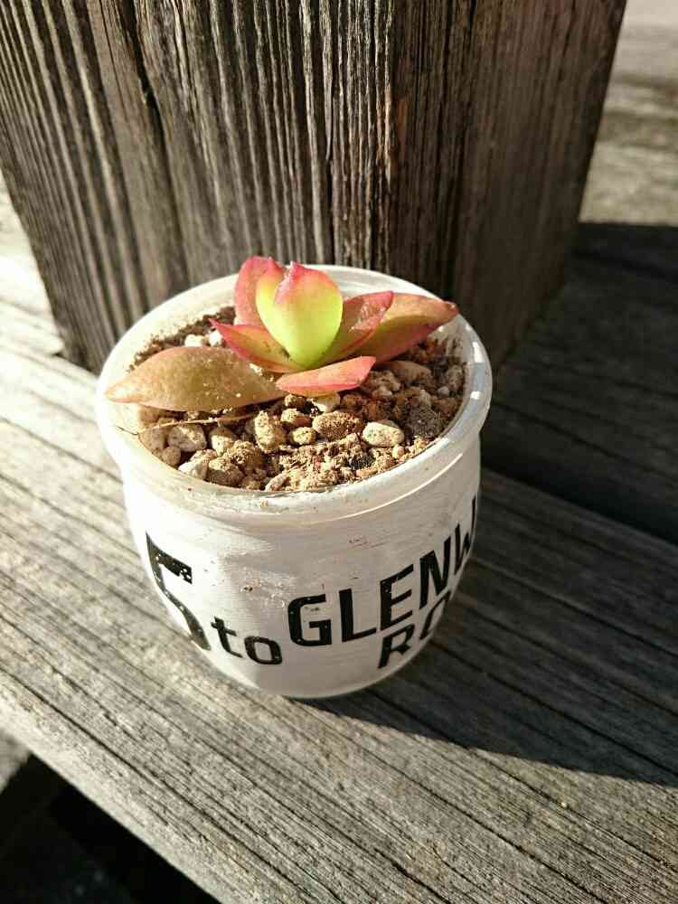 ゼリーが入ってた空き瓶を塗ってからの転写シールでリメ鉢。
