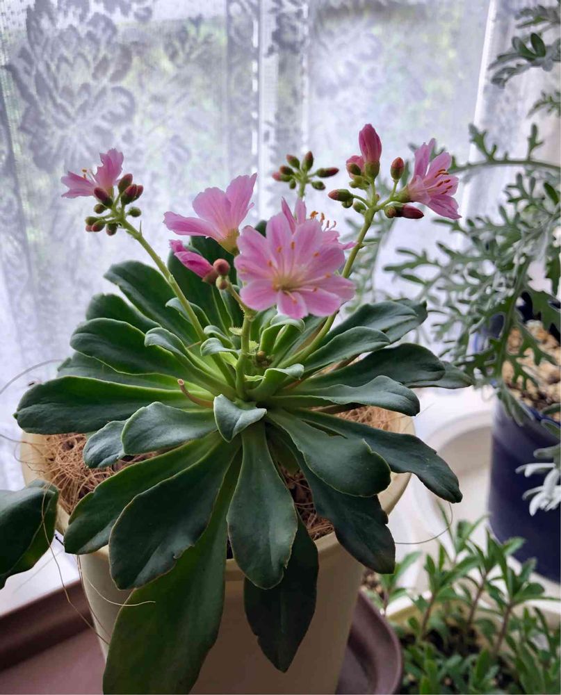 レウィシアの可愛らしさに魅せられ、昨年秋頃におつとめ品🌼を購入し、数鉢可愛がっています💕夏越しが難しい、みたいな説明書きがありましたが、Fonmoro さんが室内に連れてこられた、というコメントを見て、私も頑張ってみようと思いました‼️😤