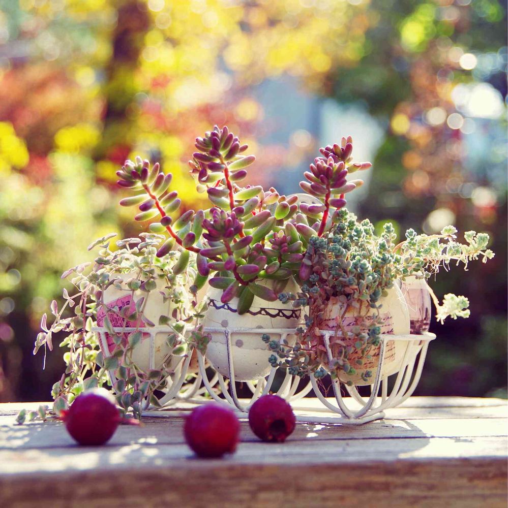 小春日和の秋の庭に誘われて✨セダムちゃん達の記念写真です(*^▽^*)🎶