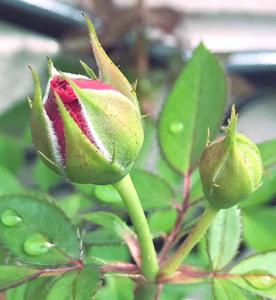 今見てきたらガクが上半分開いて蕾がゆるみ始めてたよ🌹✨