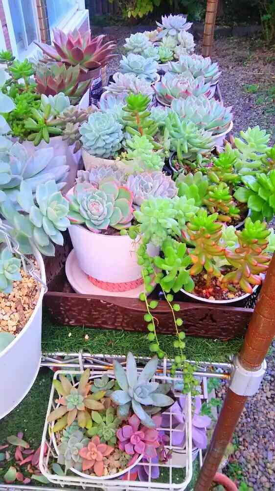 多肉棚横からの眺めもいいねぇ(人´3`*)~♪💕