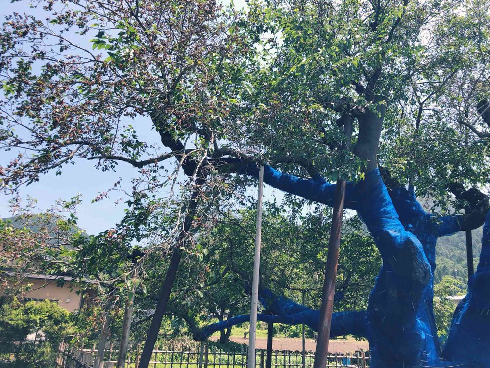 今、ネットの写真のような元気さがなく幹には青いネット…片側の枝はほとんど枯れかかってる状態でした。現在病害虫の被害のため樹木医の治療を受けているとのことでした。