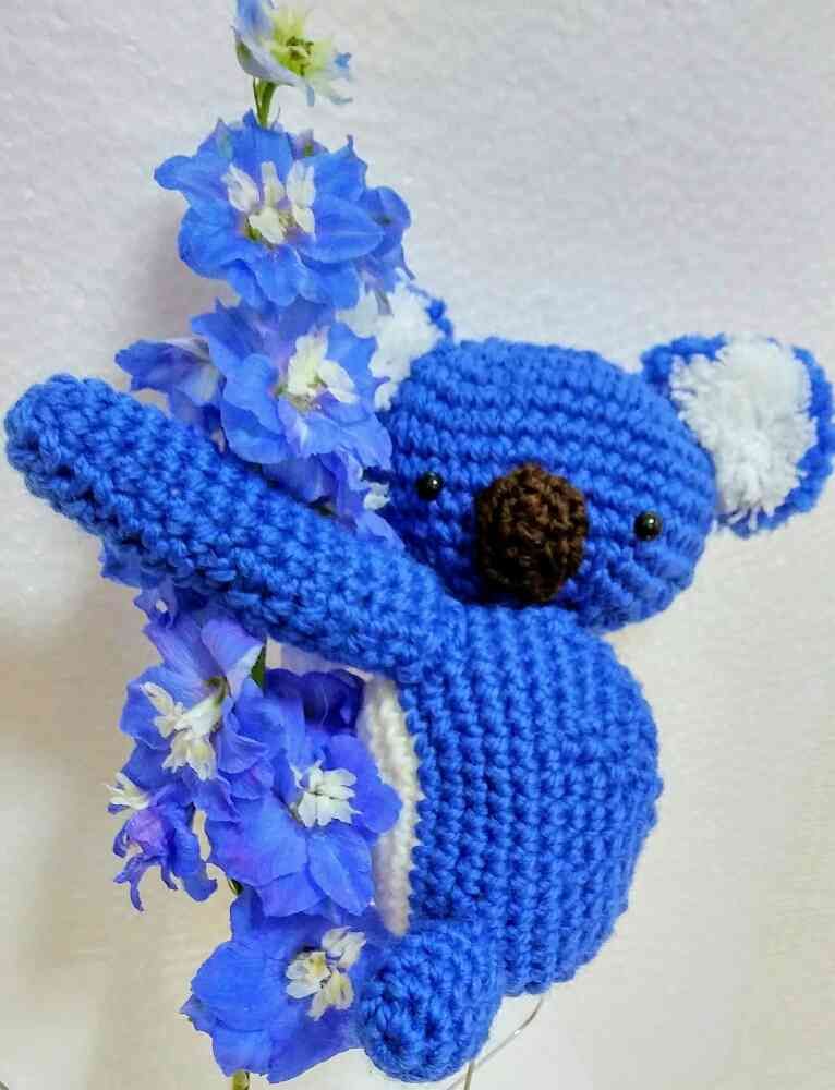 かわいいコアラと綺麗なデルフィニウム素敵な組み合わせですね