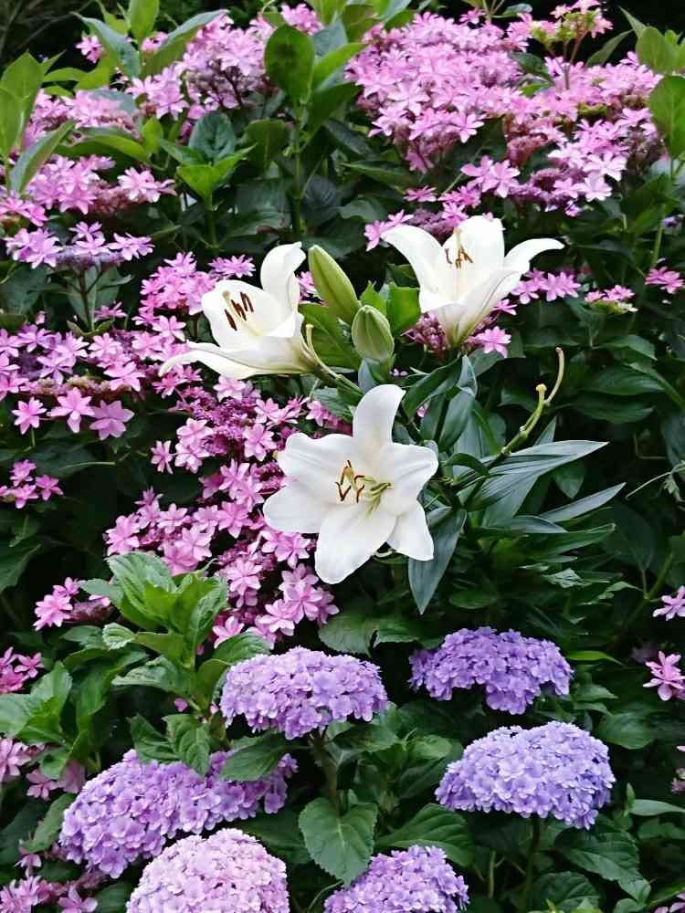 紫陽花の中にポッンとユリさんが咲いてて綺麗ですね~♪😊♡