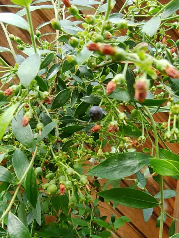 2日前にみつけたビルベリーのまんまるの実が、もう鉄紺色になっていた。そして下の方に丸くなれなかった楕円形の実もあった。食べたら、どちらも、ちゃんと甘みがあって美味しかった!うれしい!