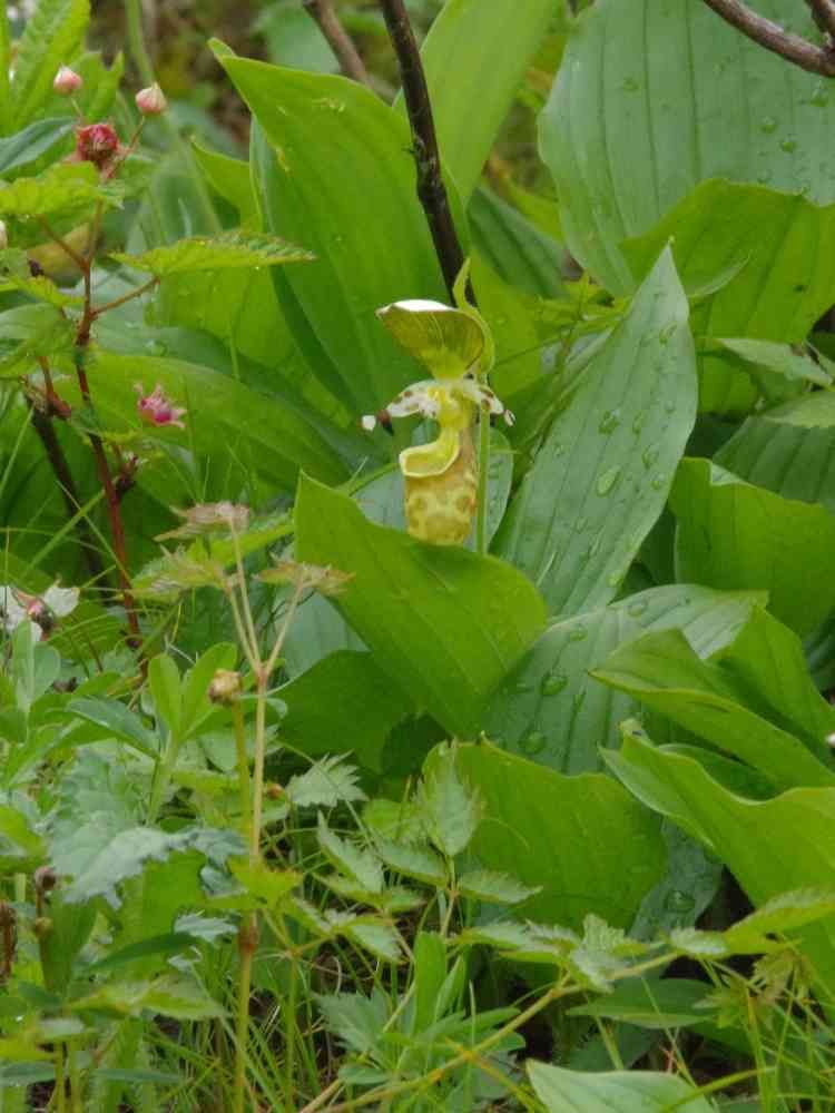 調べたところ、花、葉の形や咲いていた場所(美ヶ原高原)などから「キバナノアツモリソウ」のようでした。
