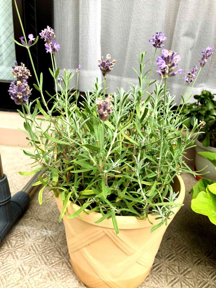 こんにちは😃一昨日雨の中お花屋さんに行って買ってしまったラベンダー。ハーブの香りはやっぱりいいです😊✨