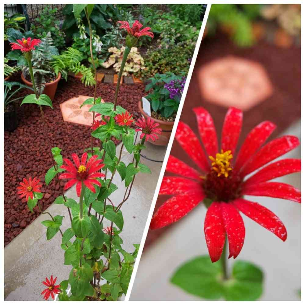赤がとっても可愛いジニアですね。こんなに背の高いジニアは初めてです。でも葉を見ると確かにジニアだと思います。