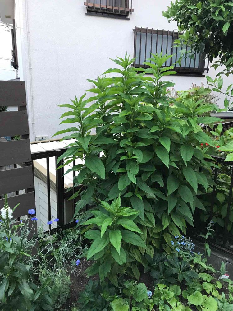 去年植えたヘリアンサスレモンクイーンだと思うのだけど、2メートル近くに成長してる。