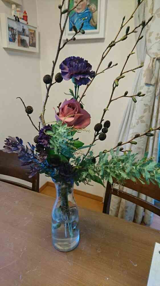 カーネーションもバラも存在感があったので、あえて少ない本数で良く見えるようにって感じです(^-^)