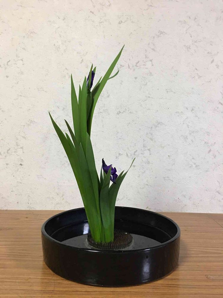 今回のお稽古🌼、未生流の基本形、格花、かきつばた三花十九葉。