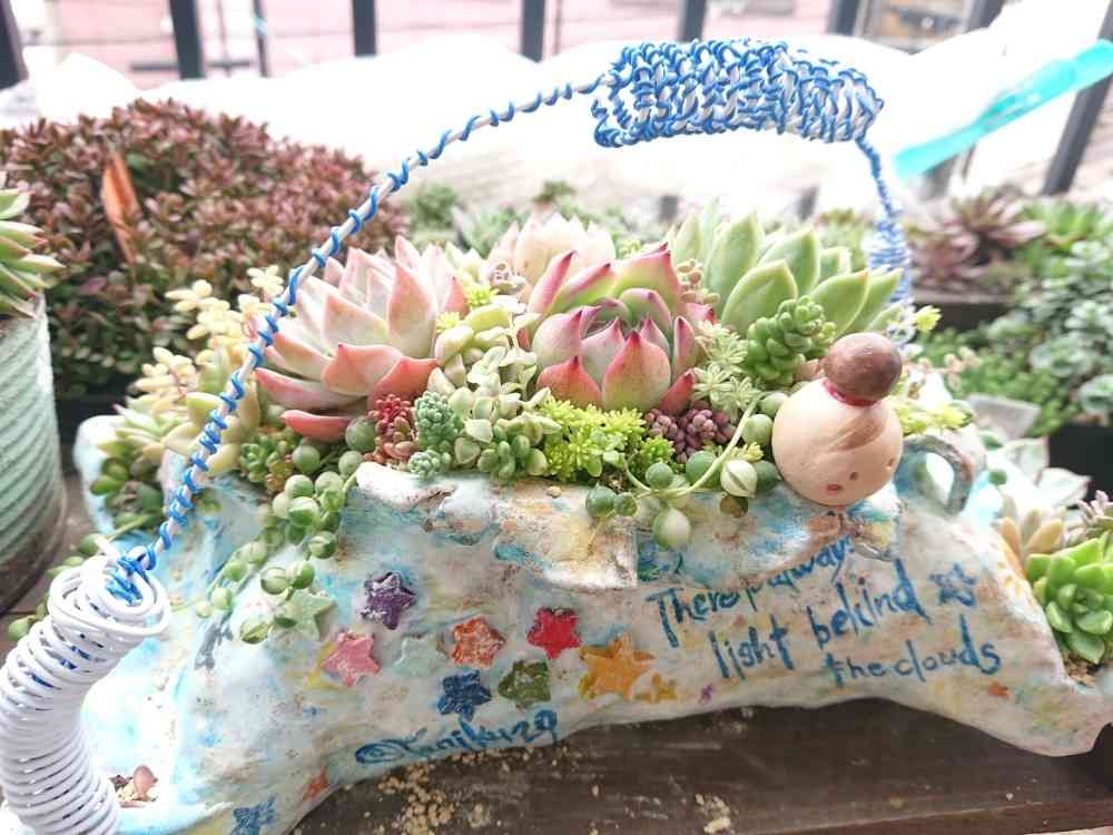 鉢と持ち手だけが夏仕様…これ秋に向かって展示するのに💦